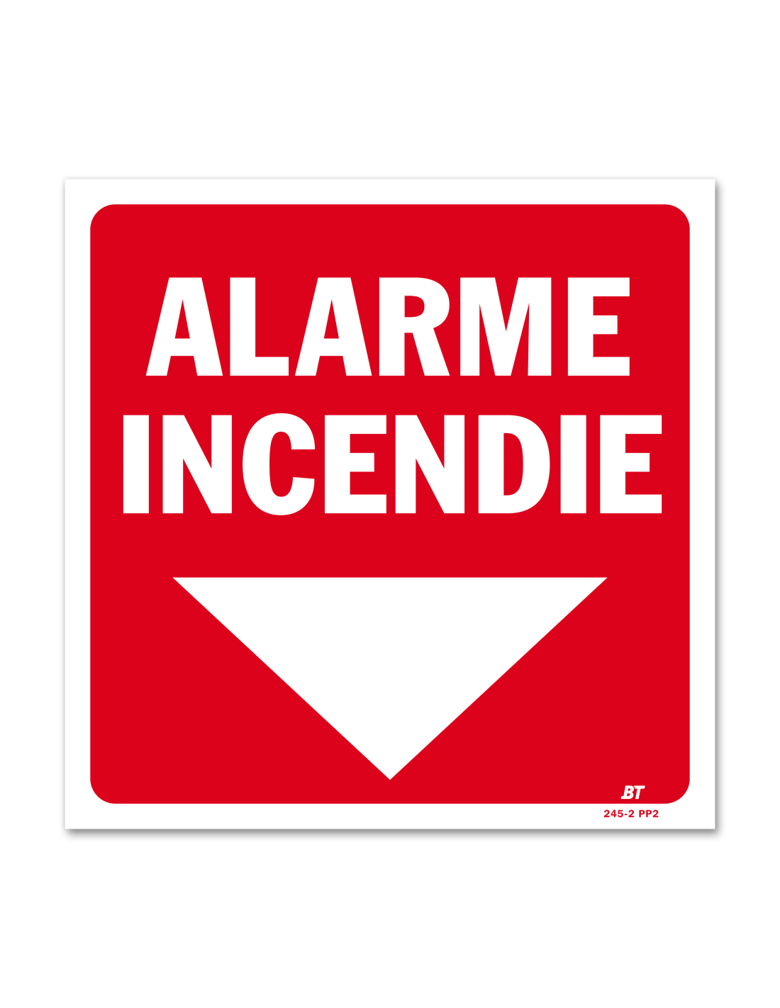 Ce panneau de forme rectangulaire symbolise la présence d’une alarme incendie