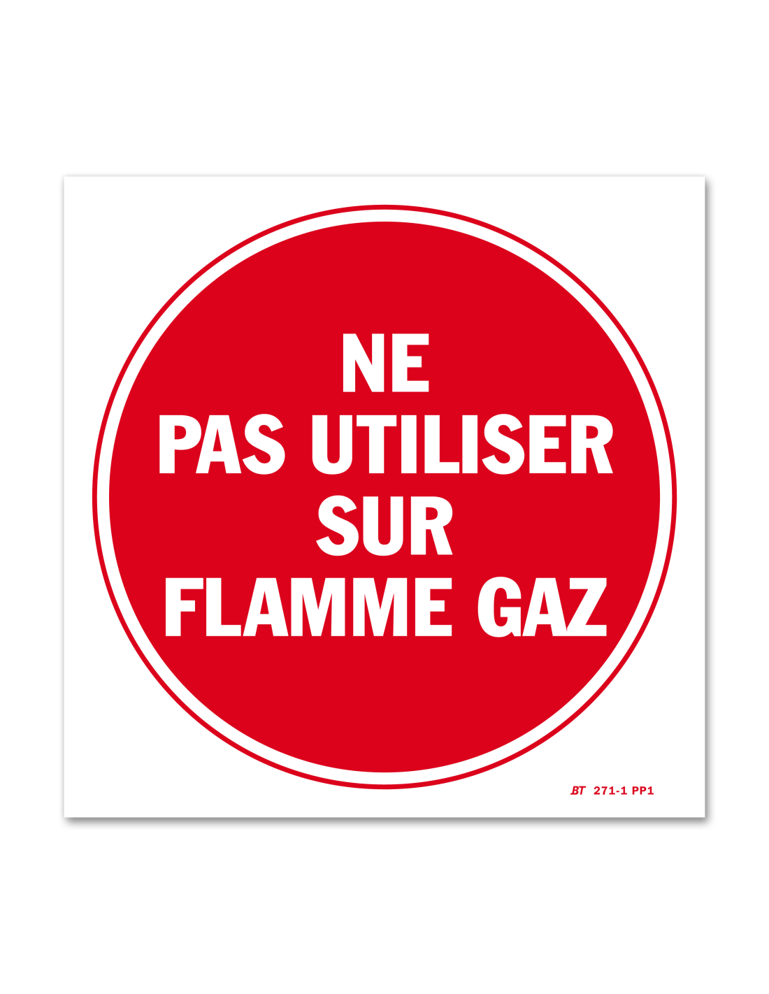 Panneau avertissement "ne pas utiliser sur flamme gaz"