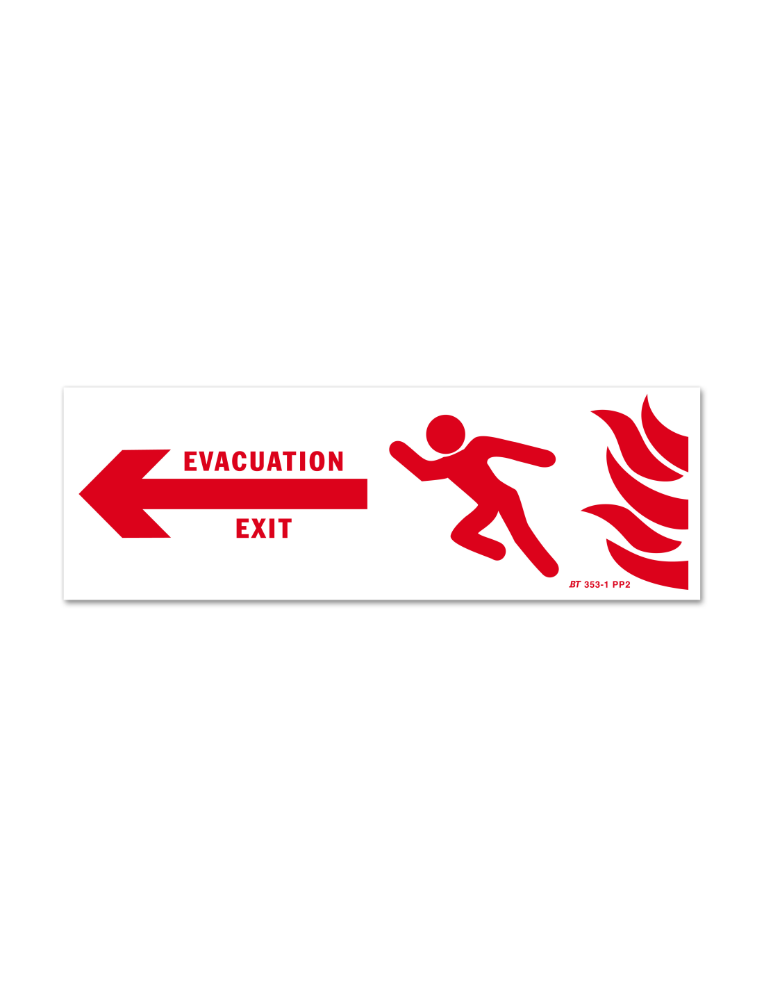 Ce panneau indique la présence d’une évacuation par la gauche en cas d’incendie