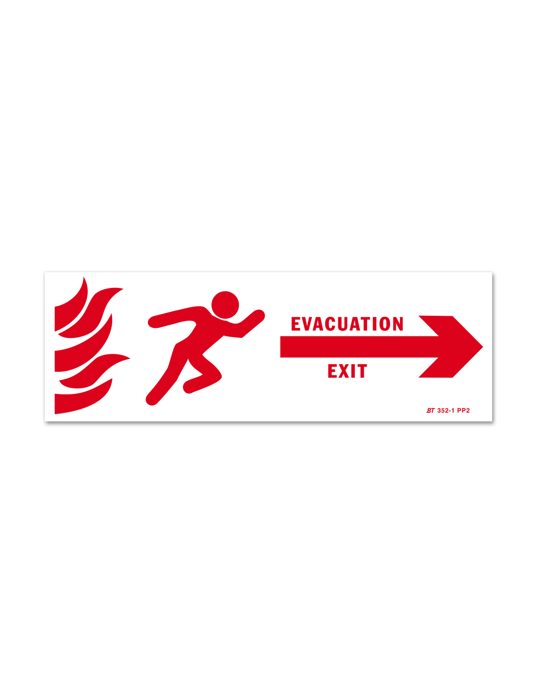 Ce panneau indique la présence d’une évacuation par la droite en cas d’incendie