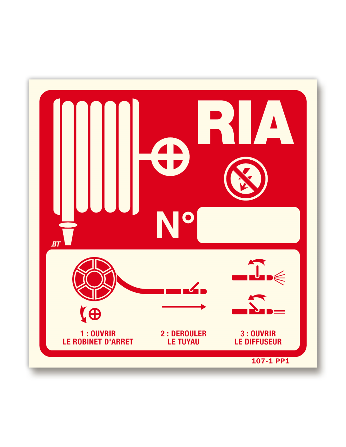 Ce panneau de forme carrée symbolise la présence d’un robinet incendie armée accompagné de son mode d’emploi