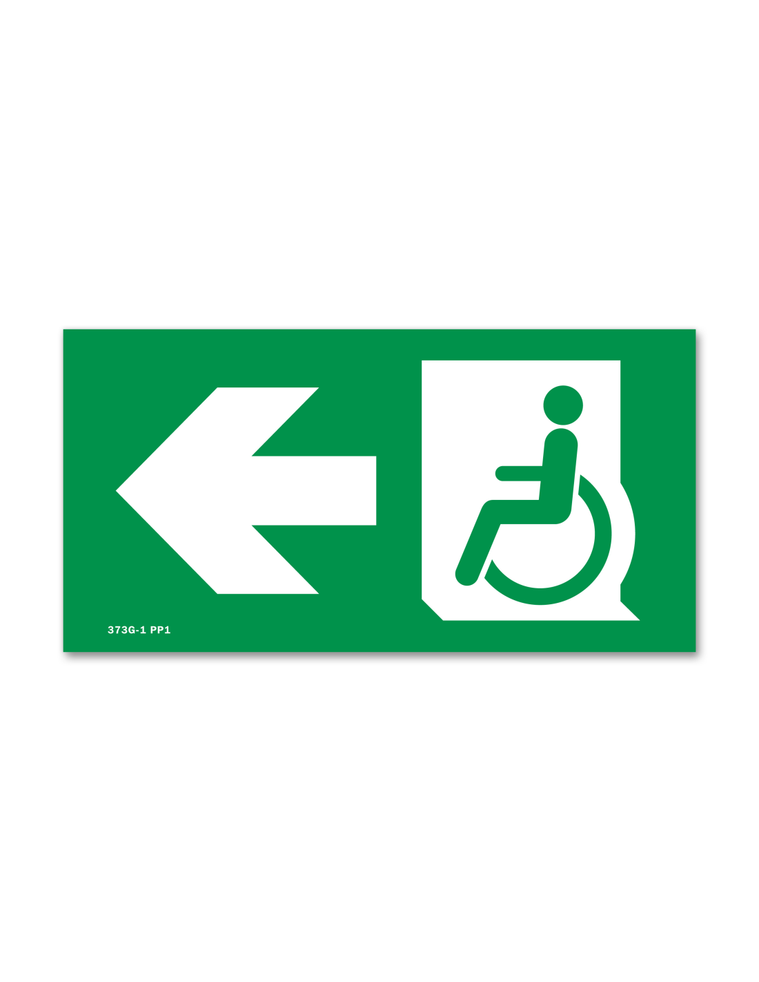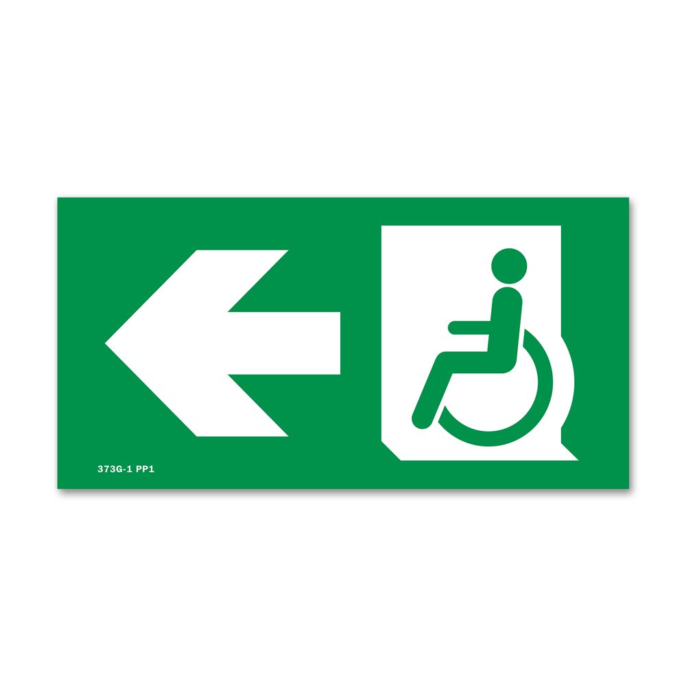 Ce panneau indique la présence d’une evacuation réservée aux personnes à mobilité réduite à gauche
