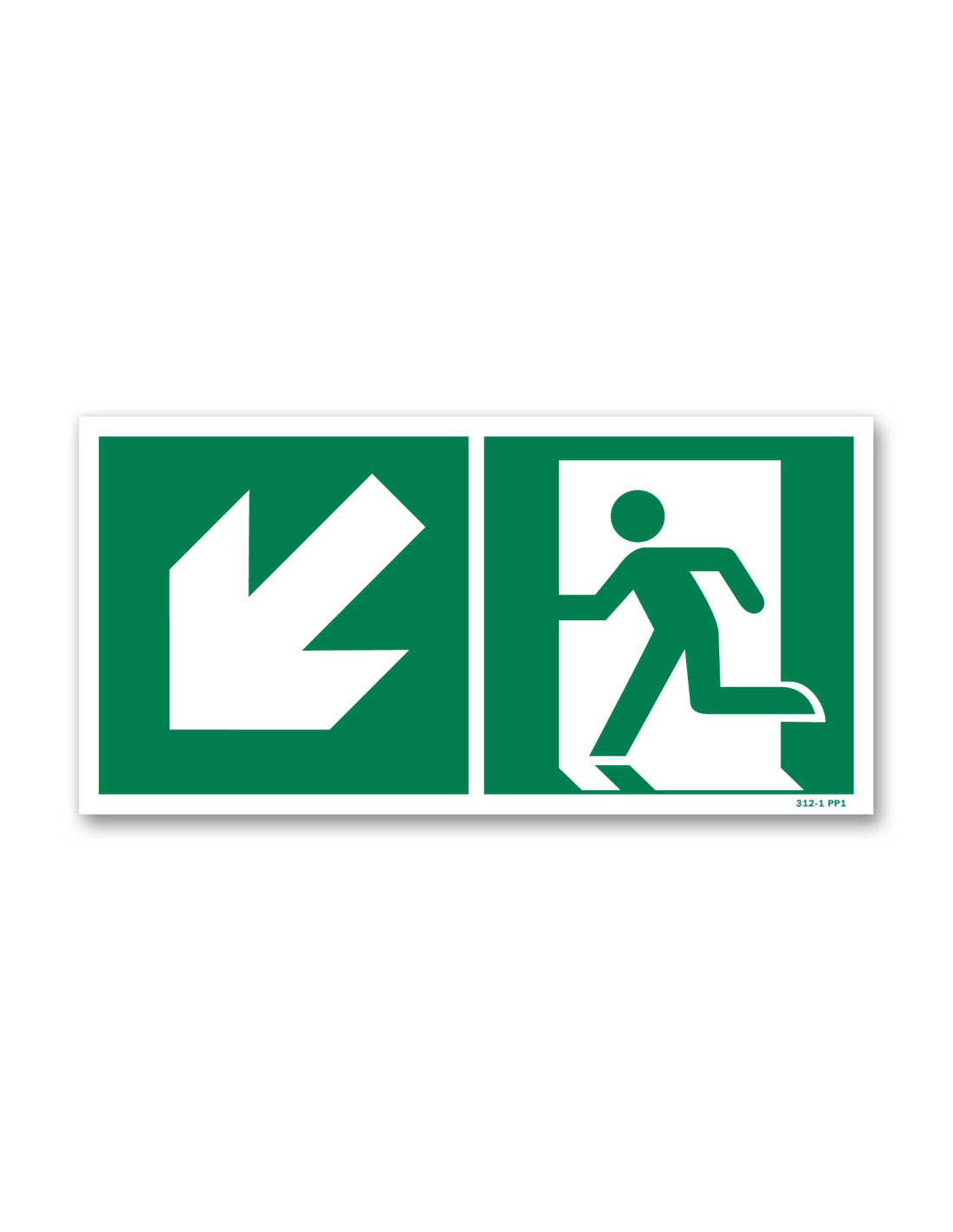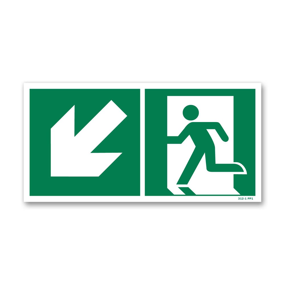Ce panneau indique la présence d’une sortie de secours par un escalier qui descend à droite