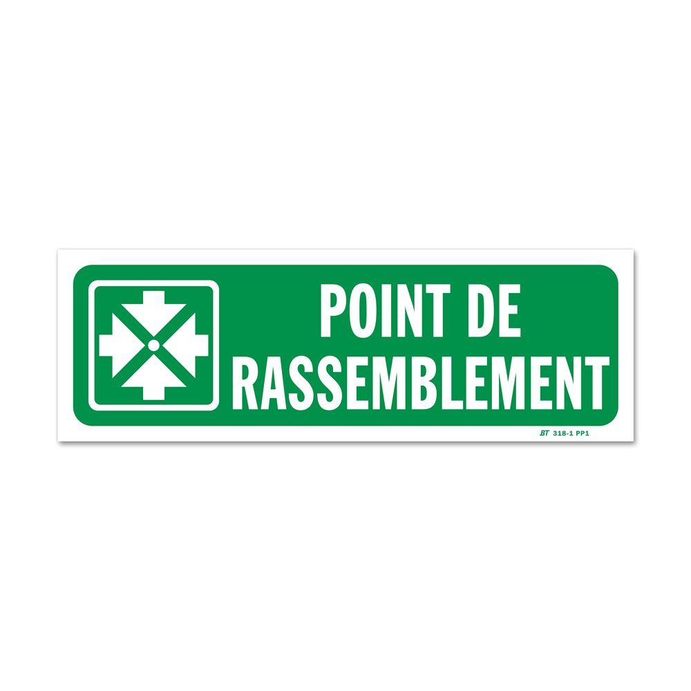Ce panneau rectangulaire indique la présence d’un point de rassemblement en cas d’urgence