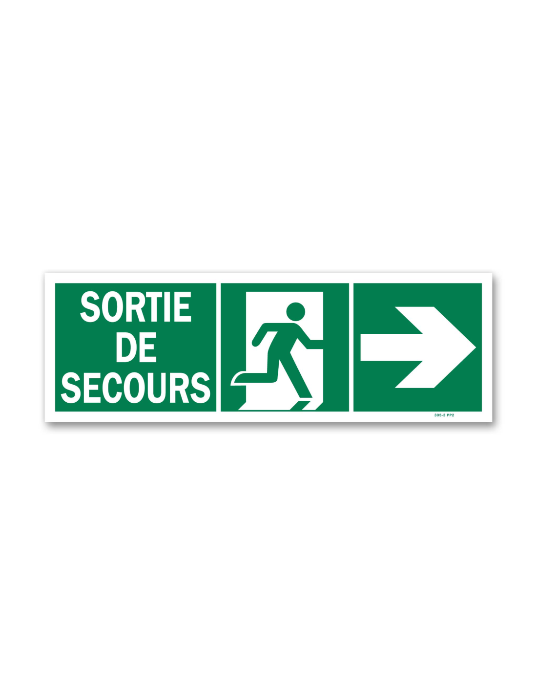 Ce panneau indique la présence d’une sortie secours vers la porte droite