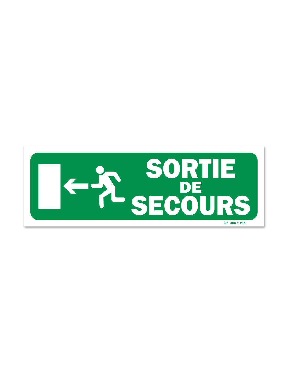 Ce panneau indique la présence d’une sortie secours vers la porte gauche
