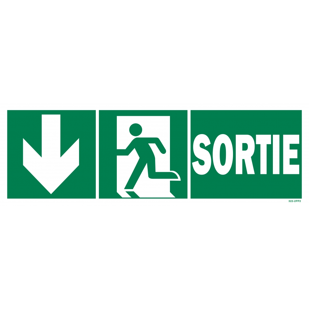 Panneau sortie + picto + flèche gauche descente