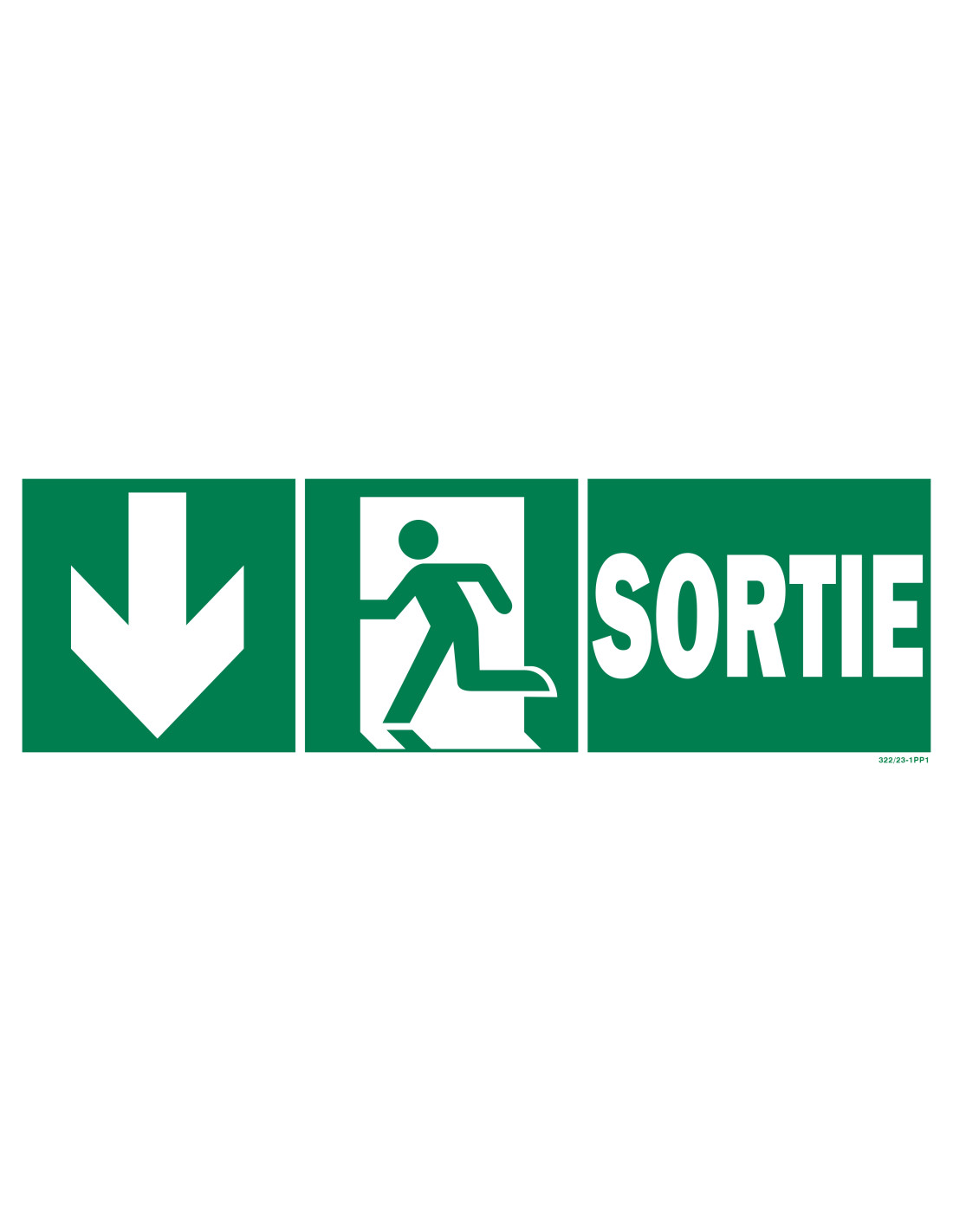 Panneau sortie + picto + flèche vers le bas recto/verso