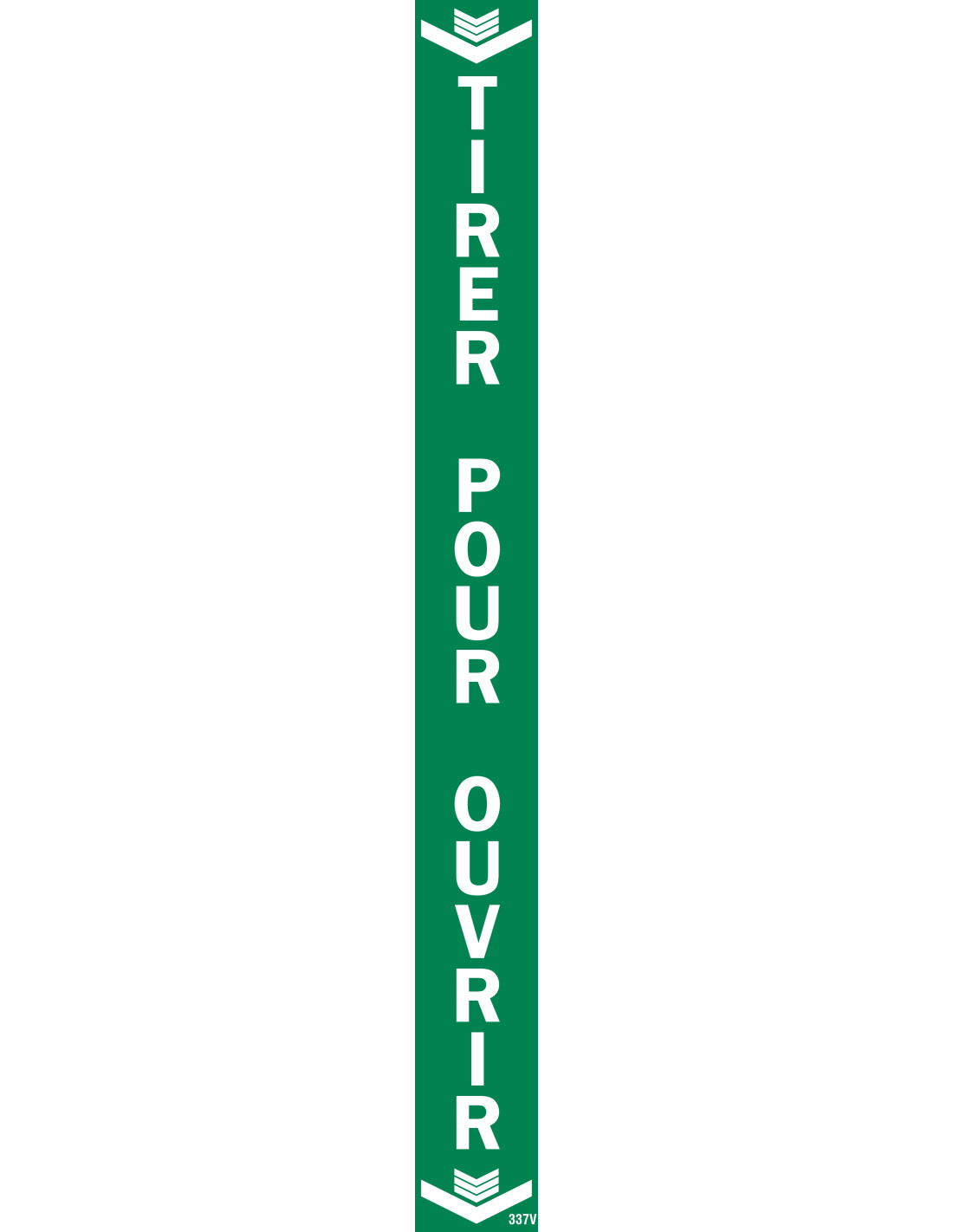 Ce panneau vertical explique comment ouvir "Tirer pour ouvrir".