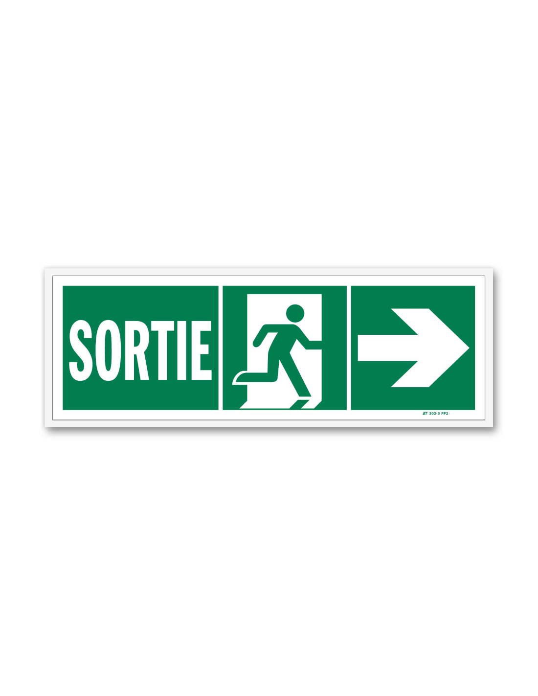 Panneau sortie + picto + flèche droite - PHOTOLUMINESCENT en PVC 1 mm