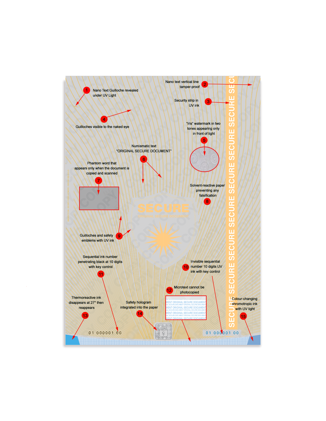 Grâce à ces trois niveaux de vérification, la réplication du papier est extrêmement laborieuse voire impossible. Certains niveaux de contrôle ne sont pas visible à l’œil nu et requièrent un grand niveau de technologie. Par conséquent, l’imitation du document à l’identique est irréalisable.