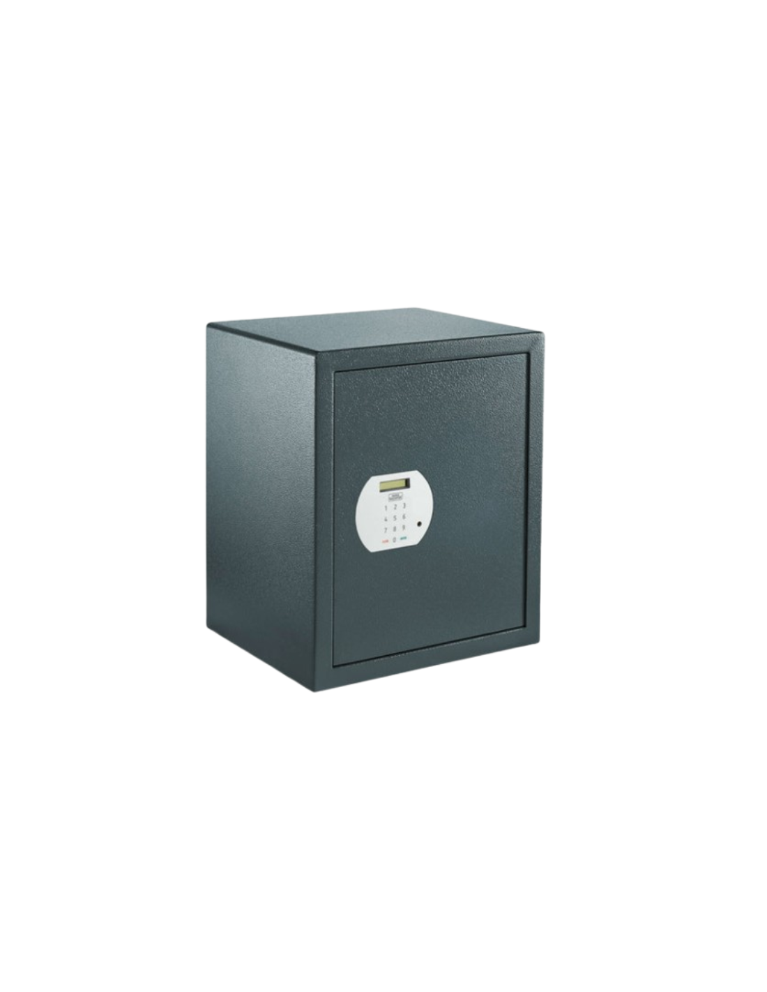 Sa conception en acier épais et robuste et ses portes à double paroi offrent aux utilisateurs une réelle sécurité. Le coffre-fort est équipé d’une double serrure de sécurité et livré avec 2 clés.