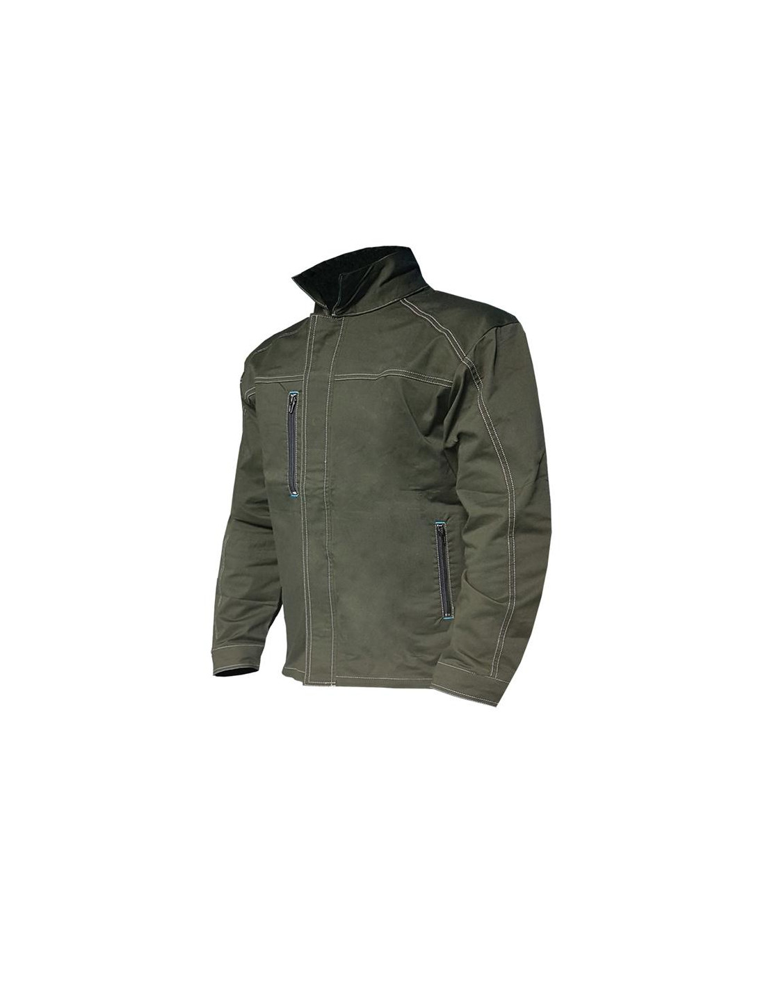 La veste est composée de 98% de coton et de 2% d’élasthanne, avec un poids de 280g/m². Les bras et les épaules sont renforcés avec un tissu Canvas composé de 65% de polyester et 35% de coton. La veste dispose d’un détail rétro-réfléchissant sur le dos pour une meilleure visibilité nocturne. La fermeture se fait par des boutons dissimulés à l’avant. Il y a 2 poches latérales zippées et 1 poche zippée sur la poitrine gauche.