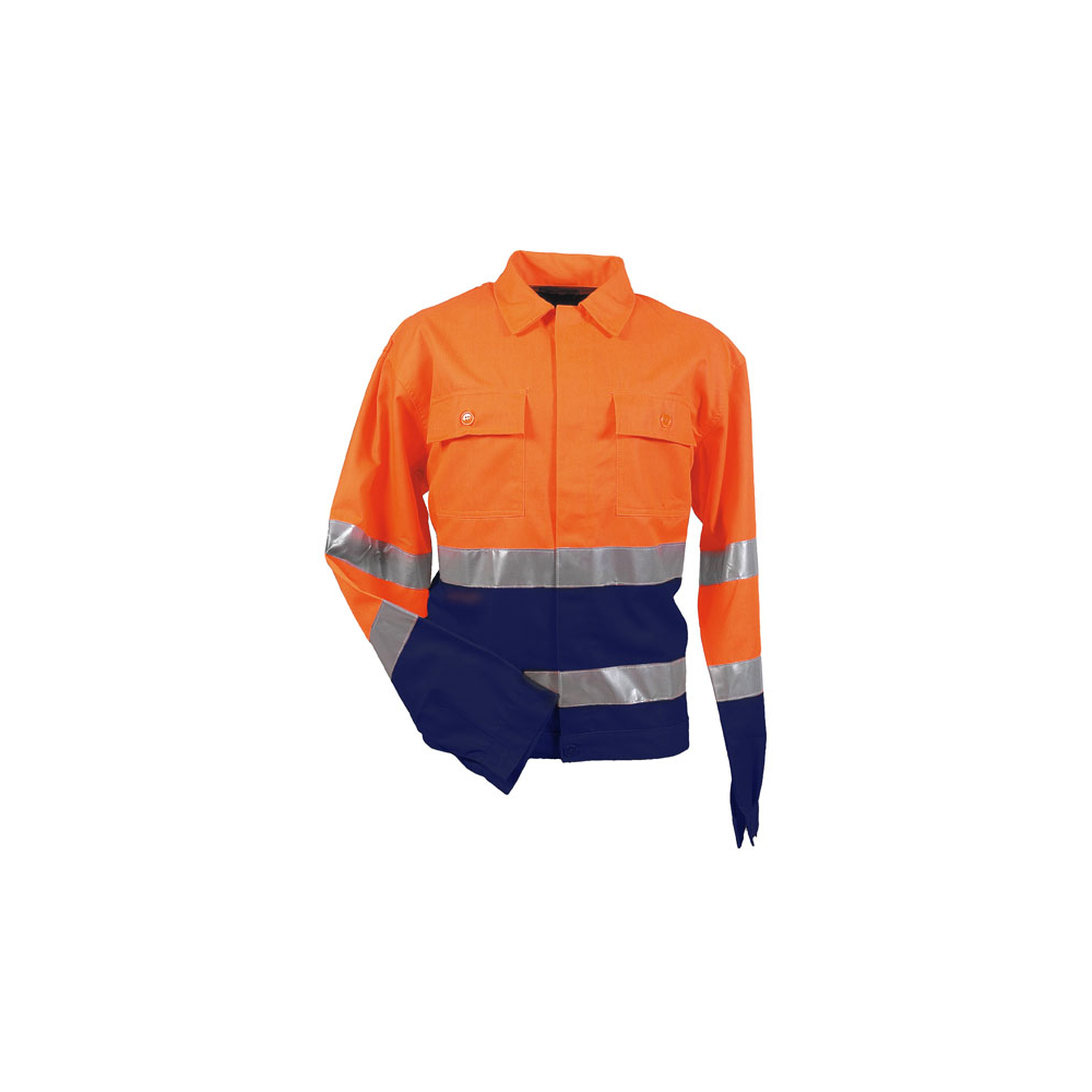 Le blouson orange est composé de 60% de coton et 40% de polyester, avec un poids de 270g/m².